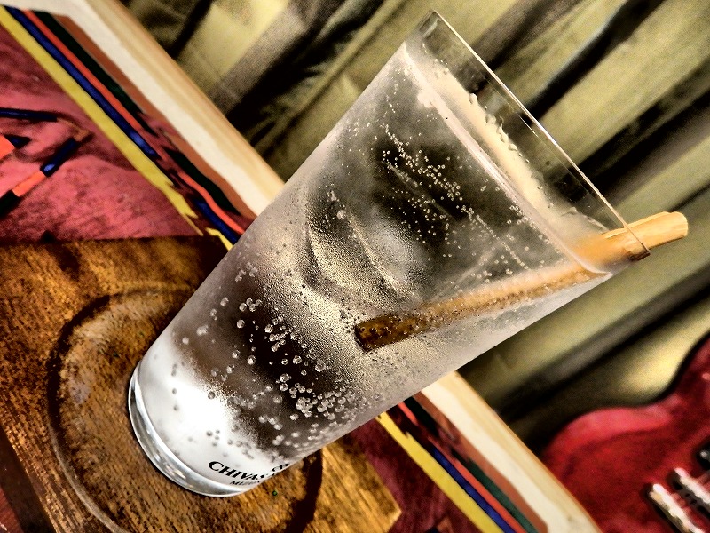 コチに炭酸水を注ぎ、シナモンスティックを添えただけのシンプルなものです。