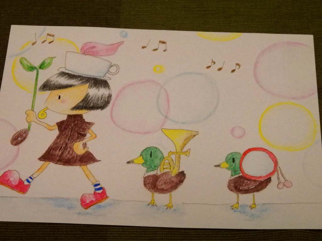 動物を描くのはホント苦手、楽器もうそっぱち(!)なんですが、