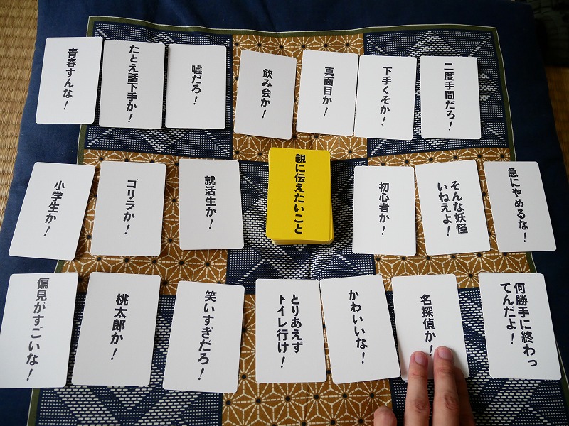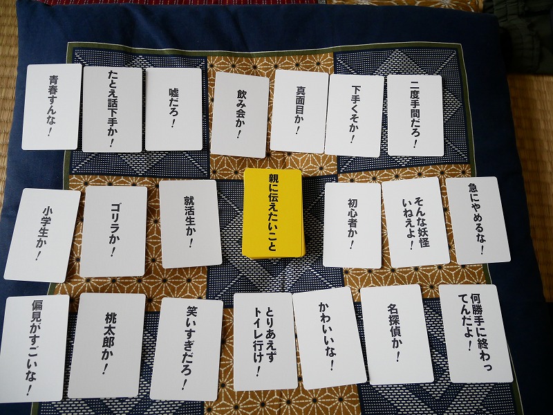 表にトークテーマ、裏にツッコミが書かれた札を使い、