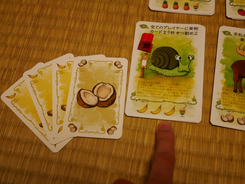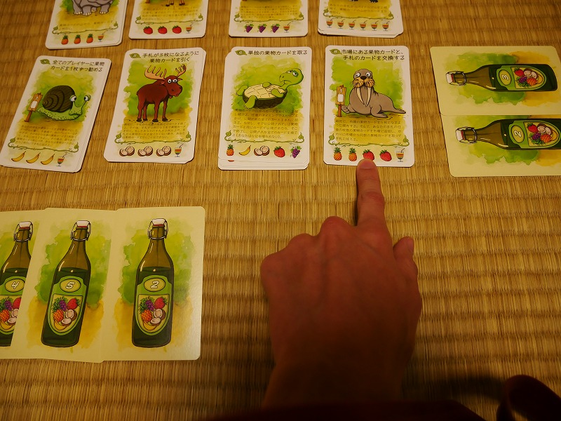 最初は割と単純に果物カードを集めて、ジュースを購入するだけなのですが、