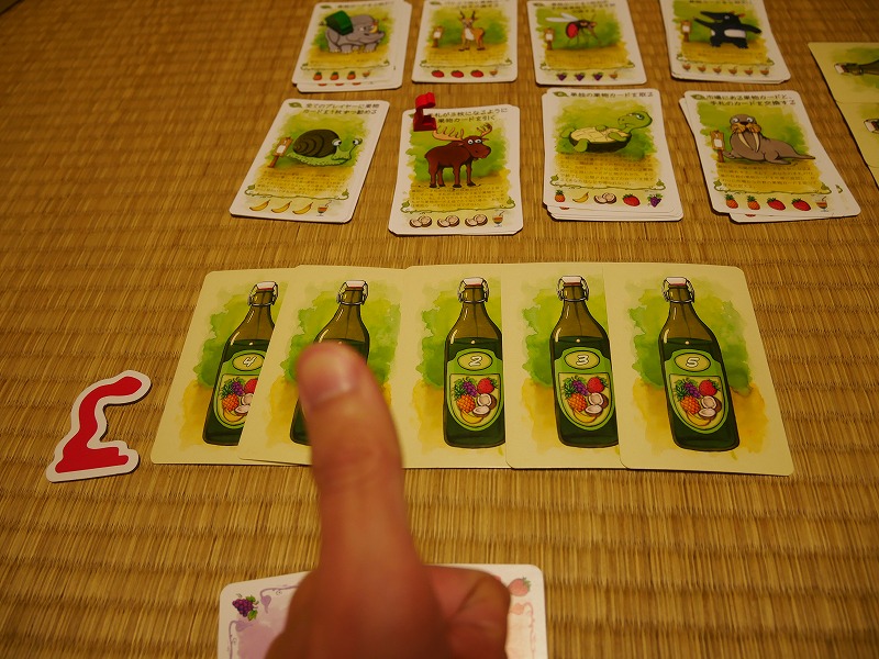 市場というシステムが増えました。No.8のカードは単純に手札と市場のカードを