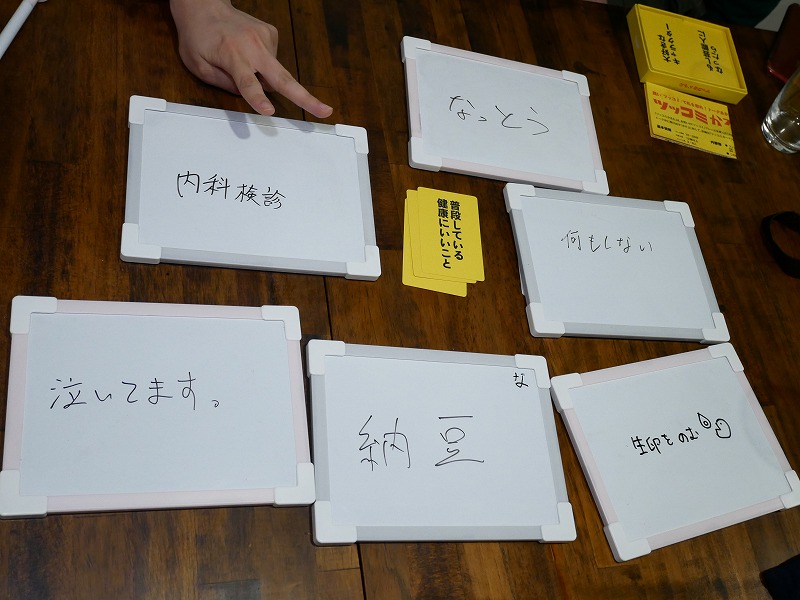 各プレイヤーはお題に対して連想する言葉を書き、公開して、