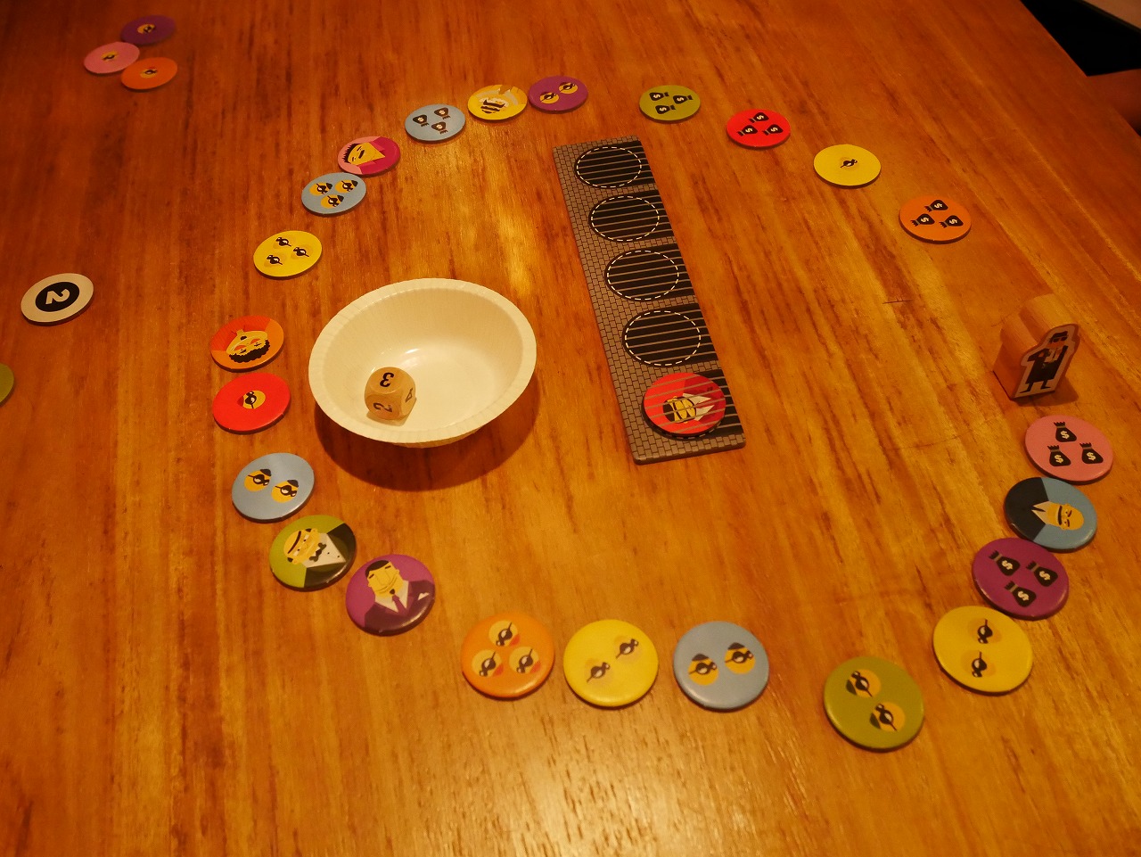 ダイスを振って刑事コマを進めます。ボスは7人中5人まで逮捕できますが、