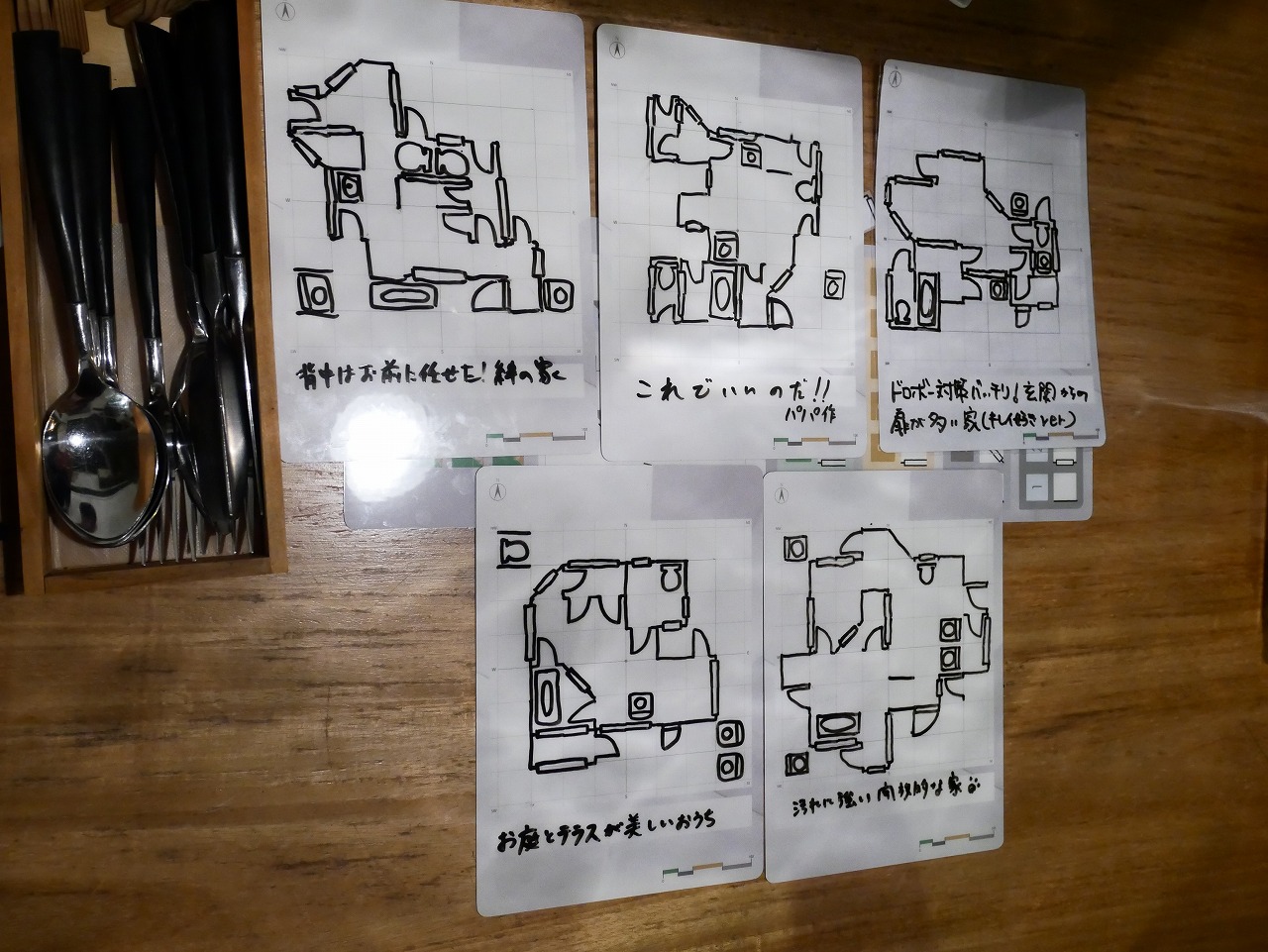各プレイヤーは建築士となり、最初は玄関の位置しか分かっていない状態から(!)、