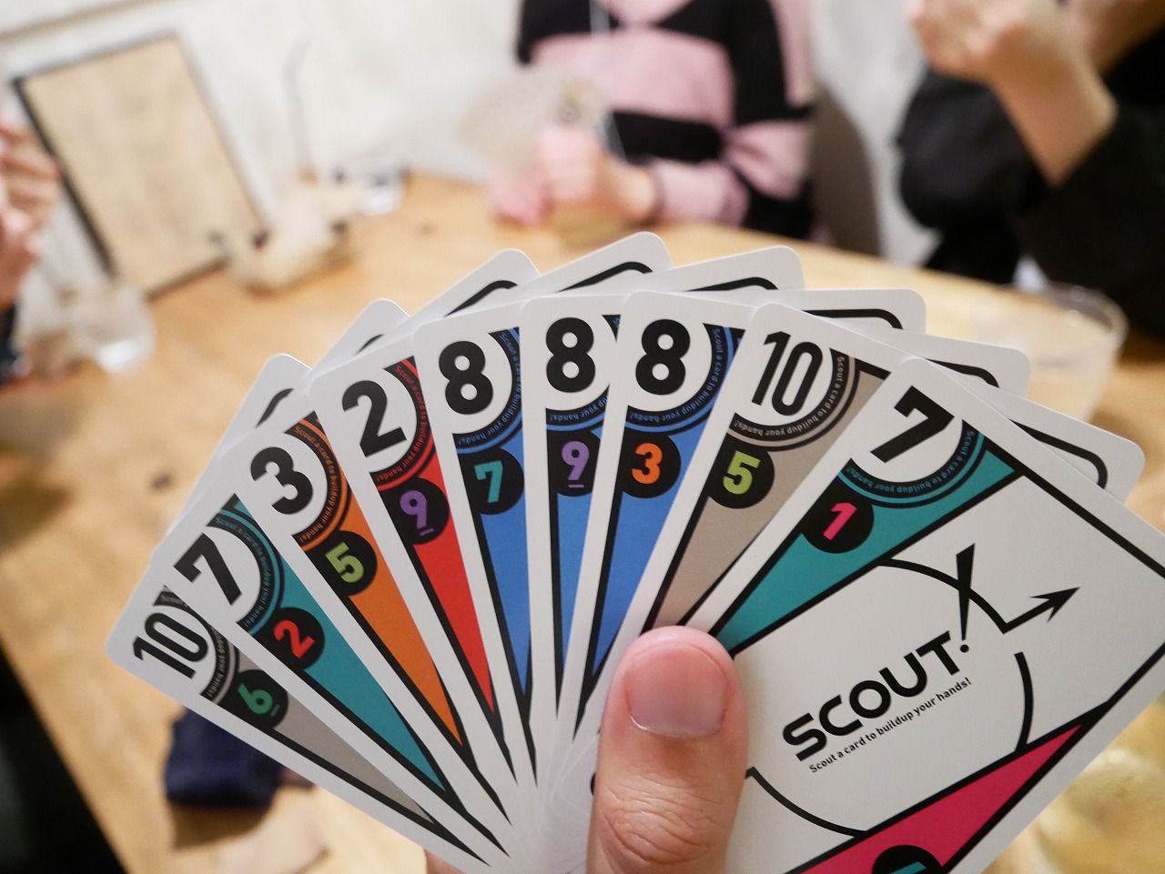 スカウトでは、前のプレイヤーが出したカード1枚選んで、カードの上下の向きも考え、