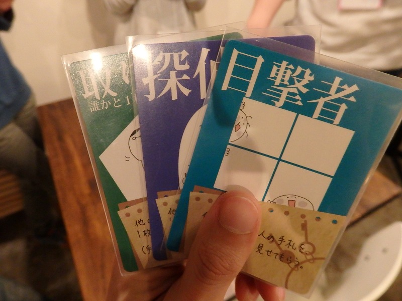 それぞれ4枚ずつ配られたカードの中には「犯人」のカードがあり、