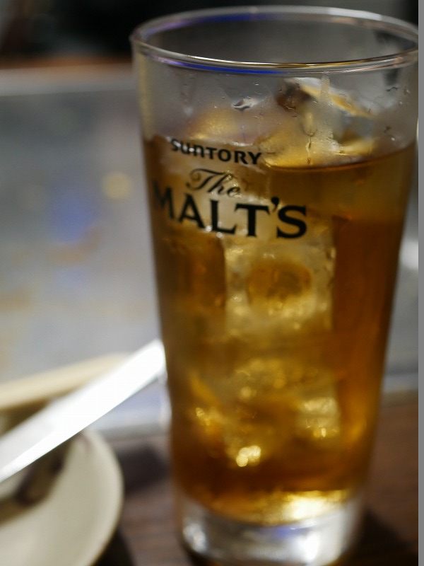 いか豚天を注文し、SUNTORY MALT'S(カナダドライ?ジンジャーエール)を飲みながら