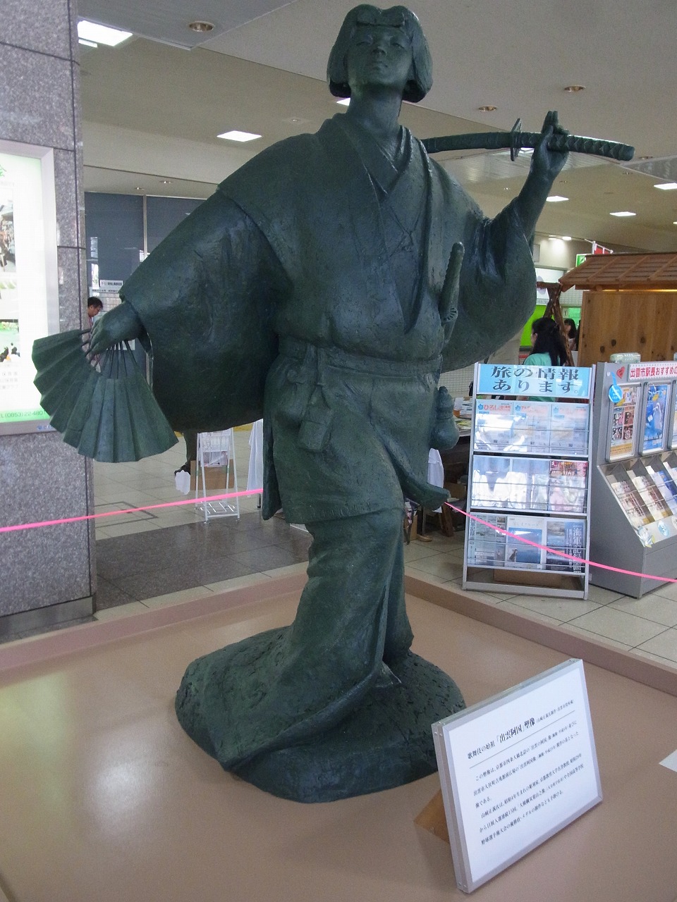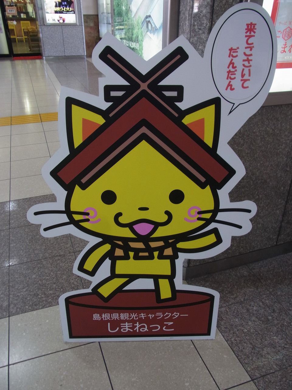 出雲市駅では、島根県のゆるキャラ「しまねっこ」、元祖アイドル「出雲の阿国」がお出迎えしてくれました!・・・あと島根Super大使の吉田君もいましたよ(投げやり)。