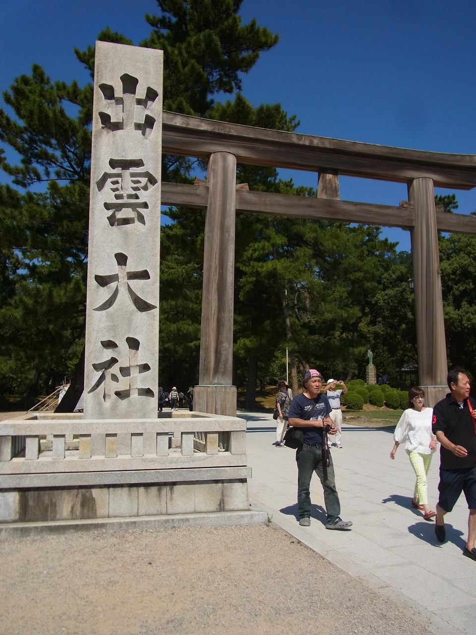 詳しくは食べログ参照w)出雲大社の神域のスタート地点である木製の鳥居前に到着。