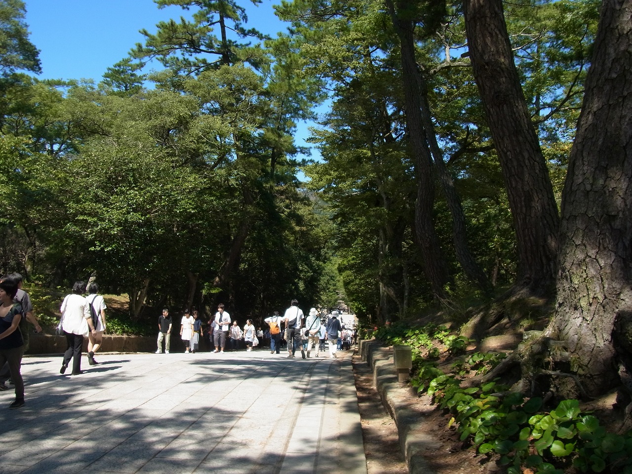 しまねっこの可愛さに癒されてから、早速、出雲大社に行きのバス停に向かったのですが、既に参拝客と思しき方々がずらっと列を作っていました。本日は快晴で、カラっとした暑さではありましたが、お年寄りや寝不足のSE(私だ!)にはしんどい天候でしたよ。