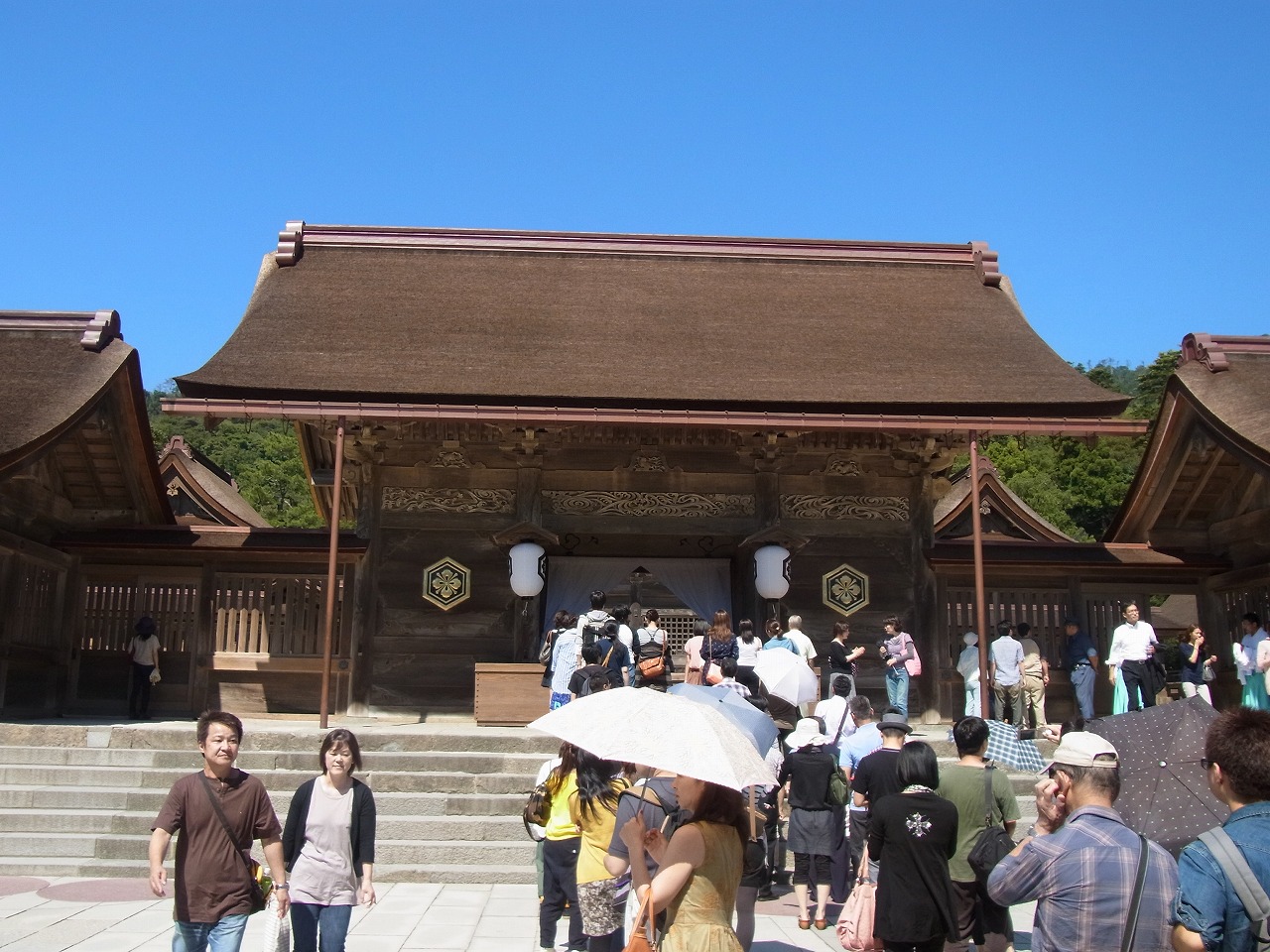本当は泊りがけでゆっくりしようと思っていたのですが、平成の大遷宮、および来月は神在月(出雲で神様の全体会議”神議り”があるため、全国的に神様が出張中で”神無月”、出雲だけは”神在月”になる)ということもあり、出雲の盛り上がりが半端ではなく、宿が全く取れなかったんですよね・・・orz