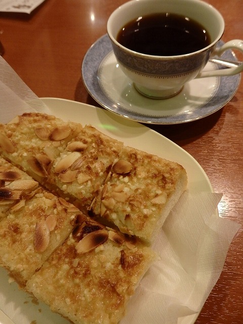 続いて、香ばしいアーモンドの香りとともにトーストが到着。