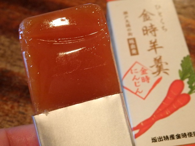 金時人参の力強く、ほんのり土のような香りと甘みが十分入った羊羹です。