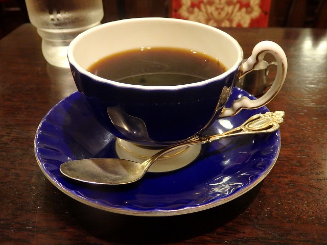 注文はマンデリン。深い青のカップから、アツアツのコーヒーのアロマが立ち昇る様は
