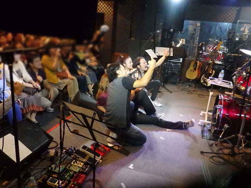まいねの仕事は、Masakiの譜面交換やメンバの椅子の設置、片付けなど。