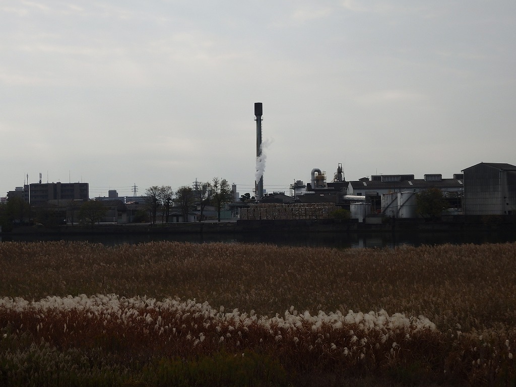 ススキ野原ナメ、川向こうの工場がちょっと侘しくてロマンですねぇ(にわか工場マニア感)。