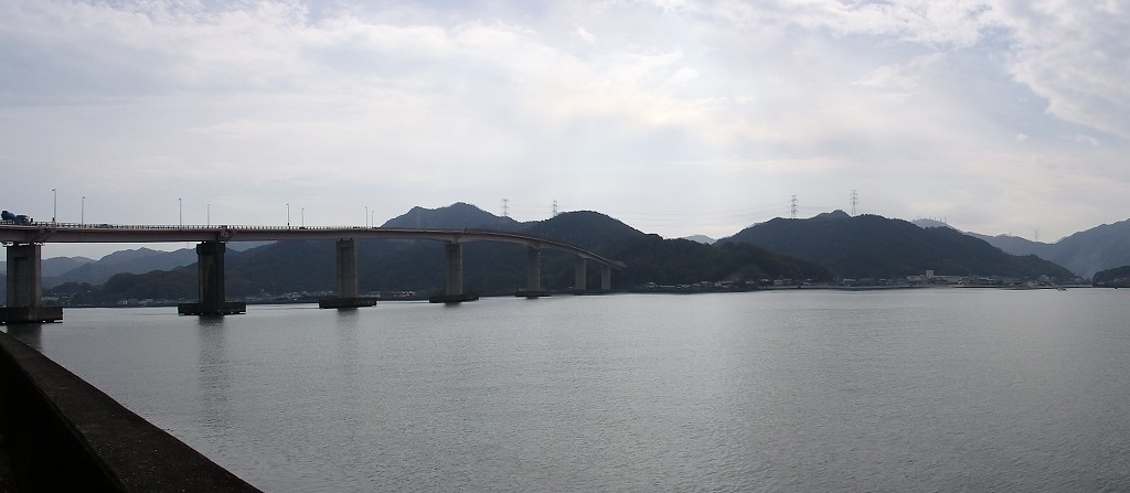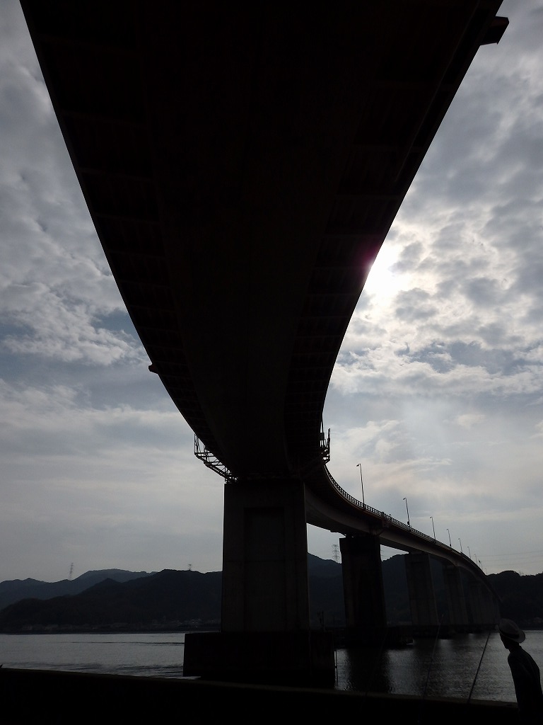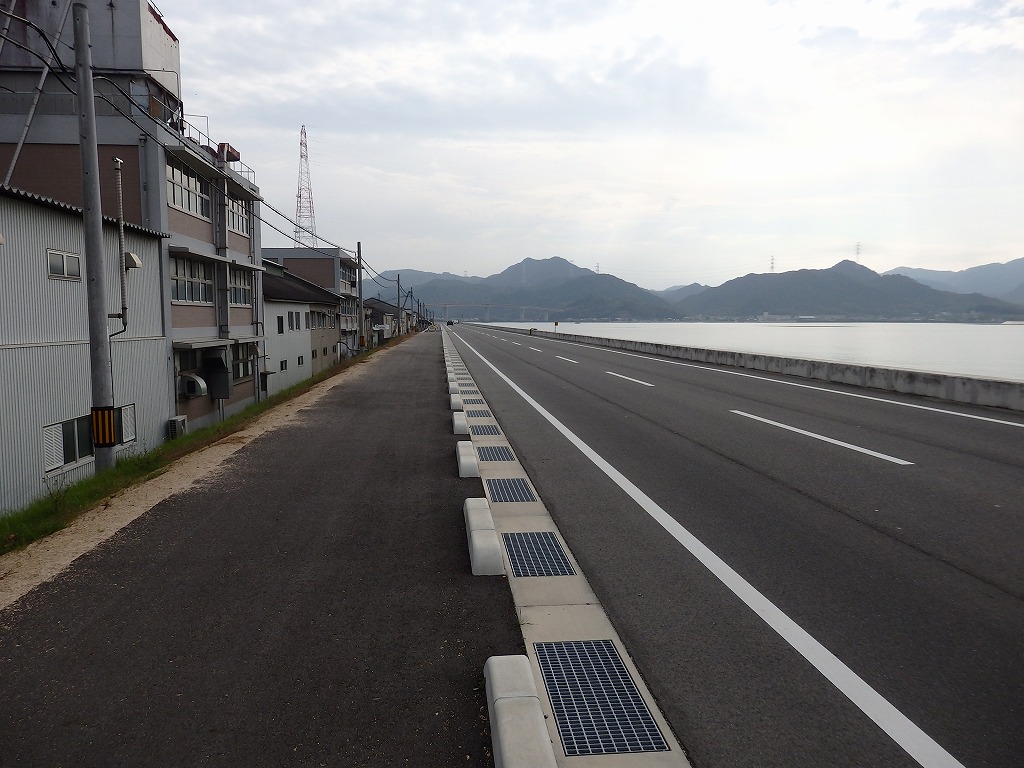 そんな川沿いの道をスーッと抜けると、目的地の新岡山港、児島湾大橋が見えてきます。