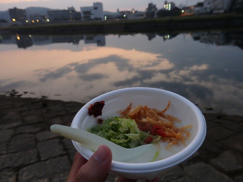 粥食へば 朝が来るなり けふのはし市の開始時刻である6時に伺っても大行列の中華粥、初めてゲットです。