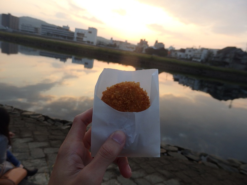 手の内に カラッとあがった 日の出かな美味しいという噂を聞いたので購入。並んでいるときに揚げ油の湯気(?)を浴びるのは