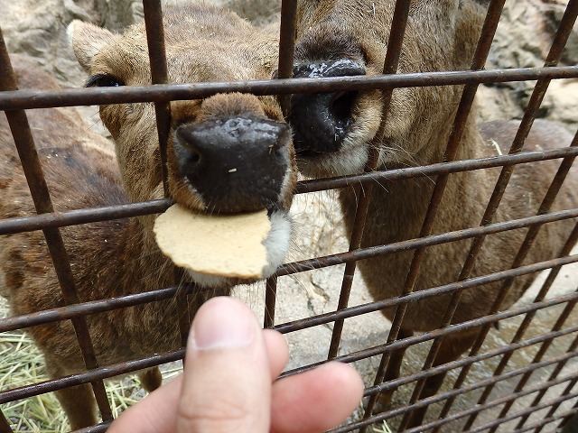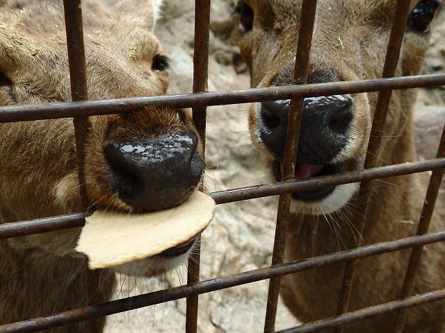 因みに写真下2枚の左側のシカの押しが凄くて、他のシカにも平等にあげようとすると