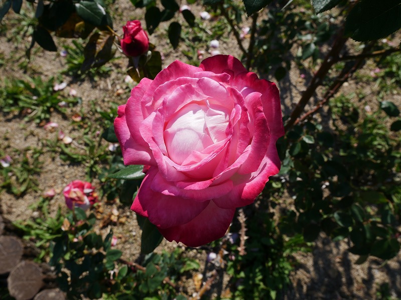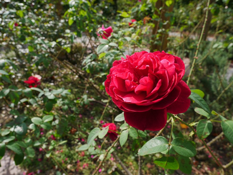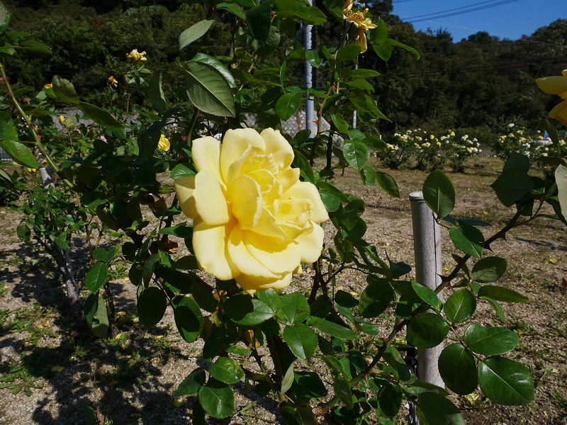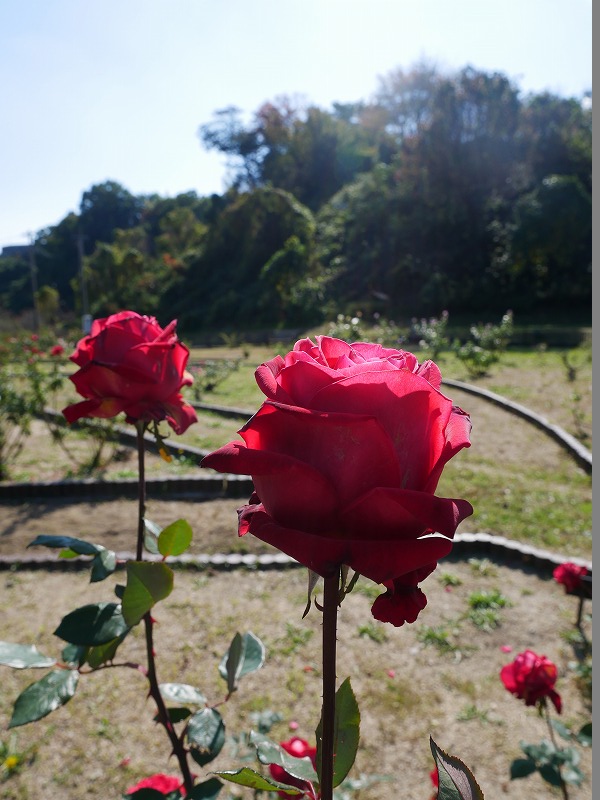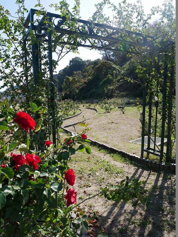 <公園入口には色とりどりの薔薇が咲いています>