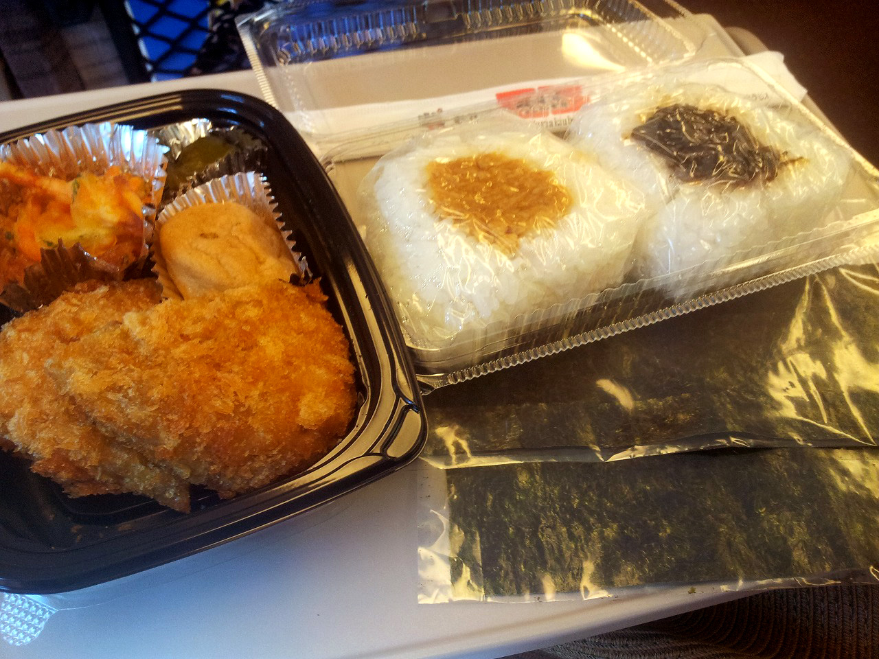 結庵さんのおむすびセットで軽めの昼食。具は鶏そぼろと昆布です。