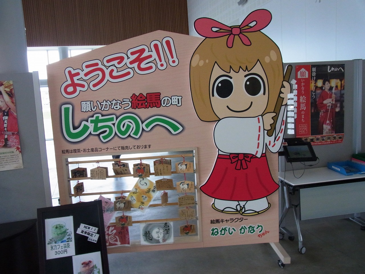 絵馬もその一つで、ご当地キャラクターのねがいかなうちゃんは絵馬がモチーフ。