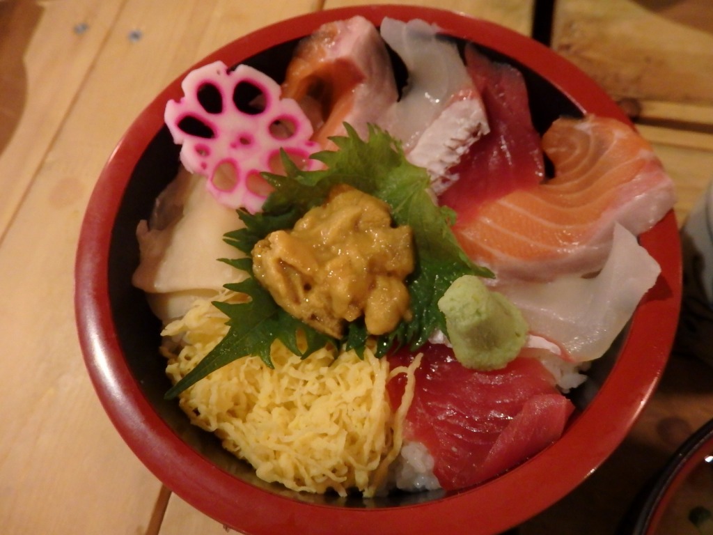 <みんなでちょっとずつ分け合って、市場名物のっけ丼気分もまた楽し♪