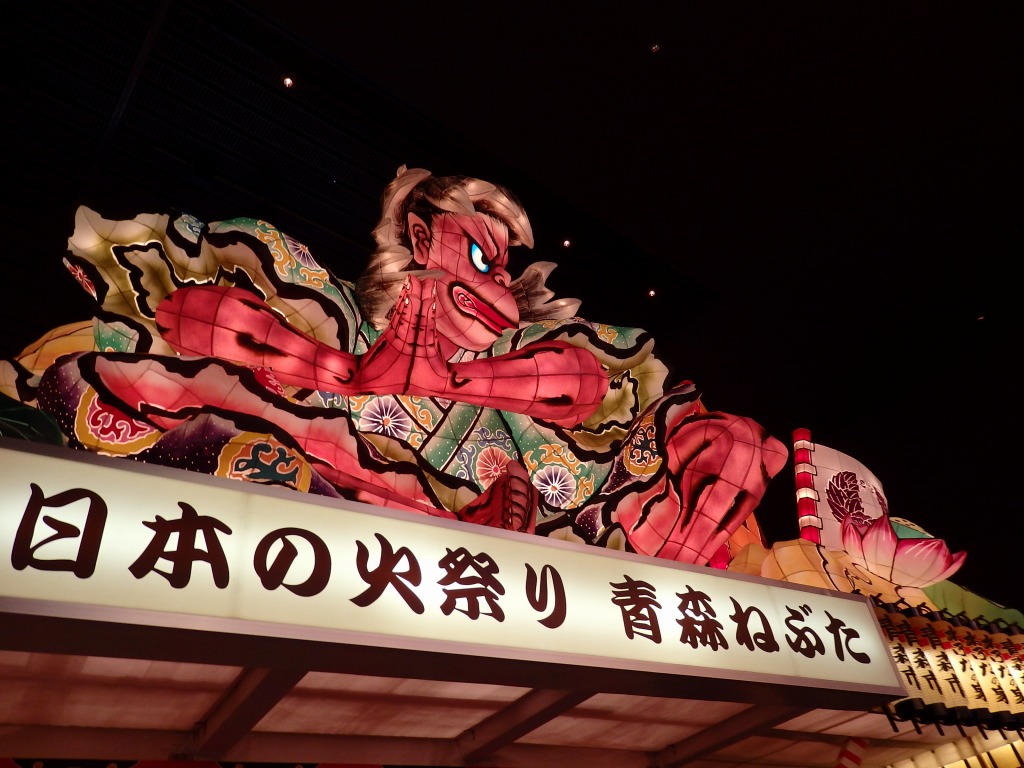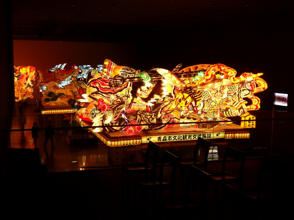 ねぶたの山車の展示は青森の各所で行われていますが、やはり闇の中で火が入ると