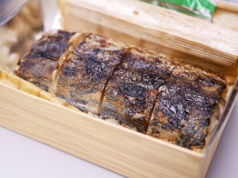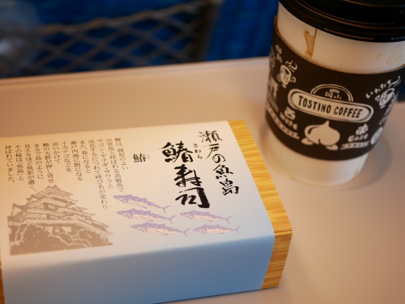 今回の駅弁チョイスは岡山名物鰆寿司。鰆の押し寿司を炙ってあり、