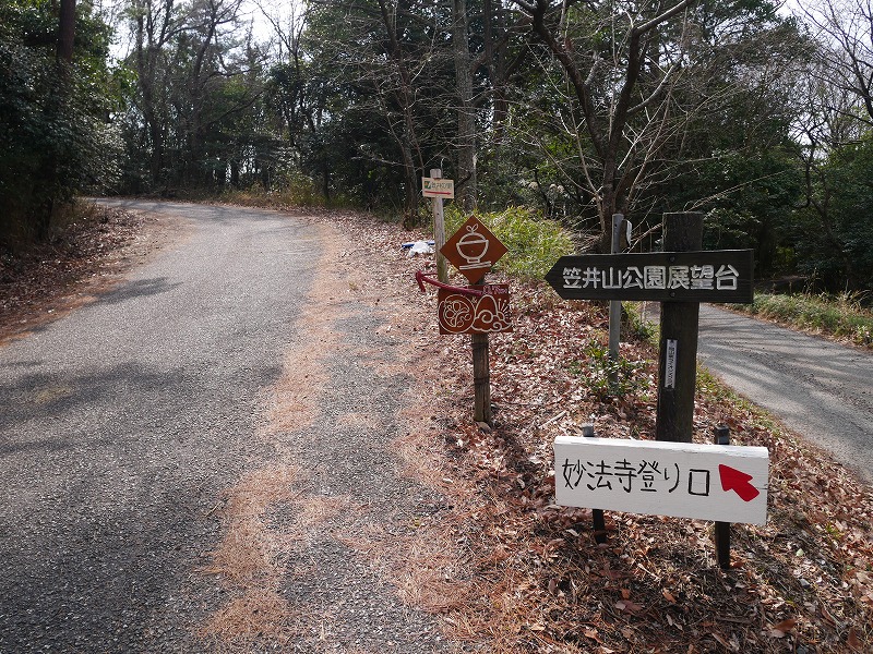 金山方面、笠井山頂上方面へ向かう道の分岐にこの看板がありまして、