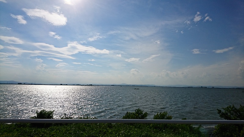 帰り道の、児島湖の上の空は嫌味なくらいに晴れていて、