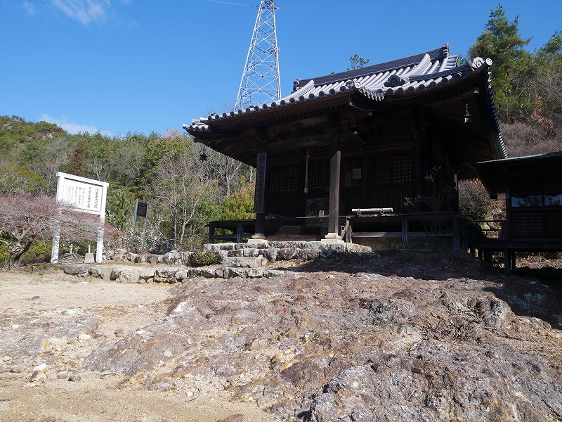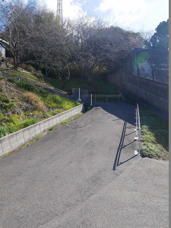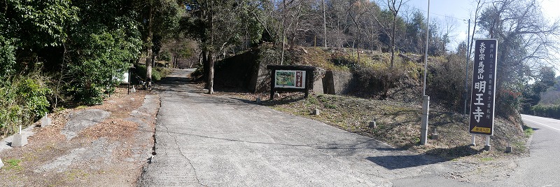 ちょっと見づらいですが、写真1枚目、左側看板奥の林に入っていく形で、