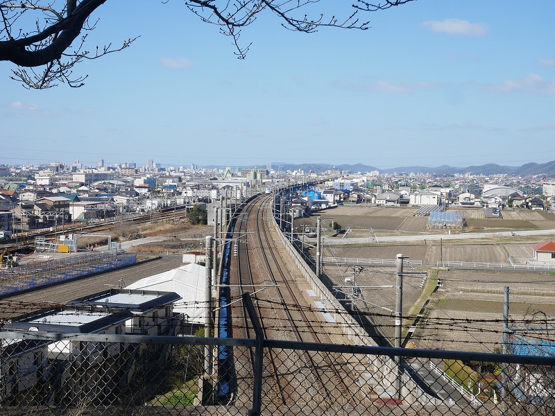 標高64mほどですが街を見渡せ、しかも新幹線の線路の真上という穴場スポット!