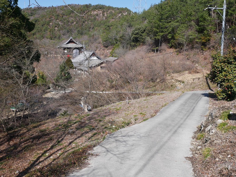 1枚目の写真で看板と看板の間を通り、お寺の前を過ぎて小鳥の森方面まで走っていく