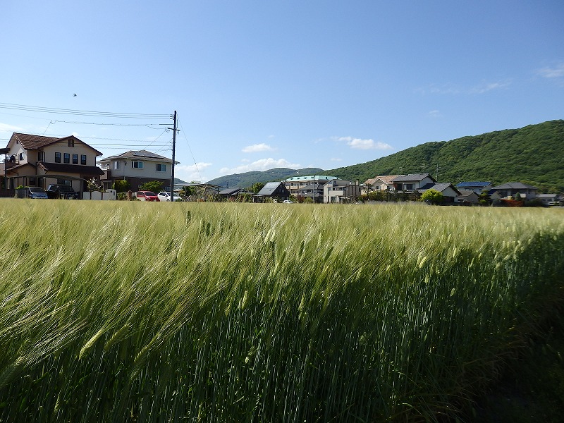 <雄町のあたり。風に揺れる大麦がキラキラ綺麗!>