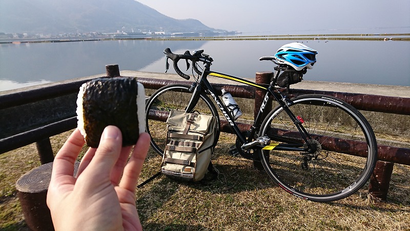 早朝の児島湖を眺めながらのおにぎりは、最高の味でした!