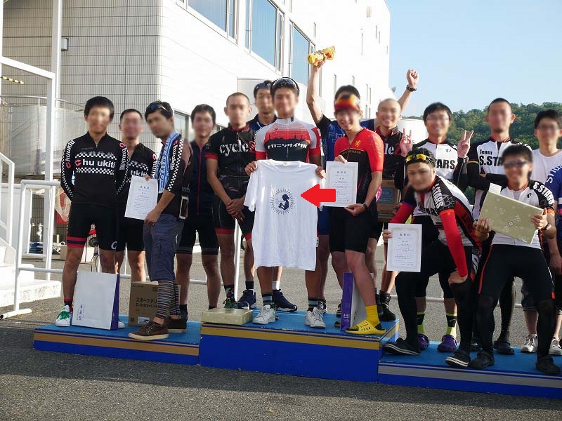 Bar Del Sereno CieloのTシャツが、表彰台の頂点に翻るの図w>