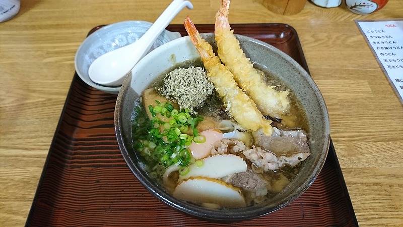 ボリューミーな具材が嬉しいうどんです。割と小さな子供向けのサービスも充実しており、
