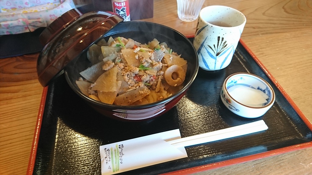 ざっくり言えば「鮒のそぼろ入りけんちん汁ぶっかけご飯」という感じ。