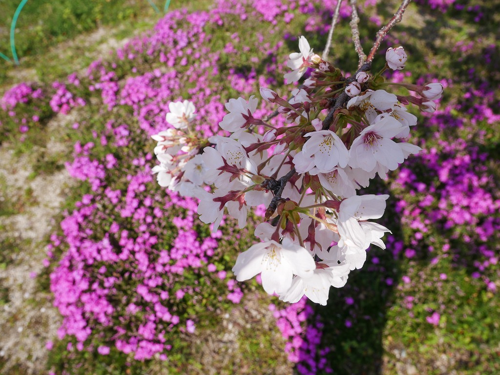 ご近所の方だけが知っているスポットに、桜の花と野の花が一緒に咲いていて