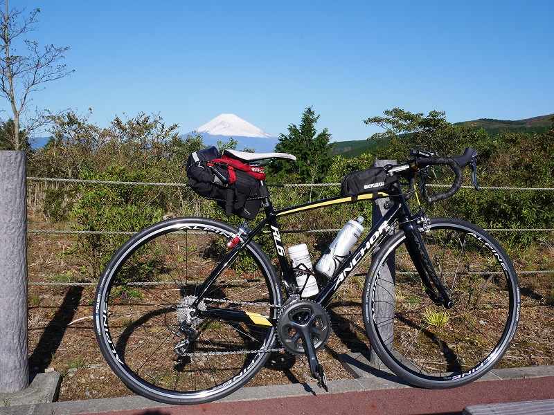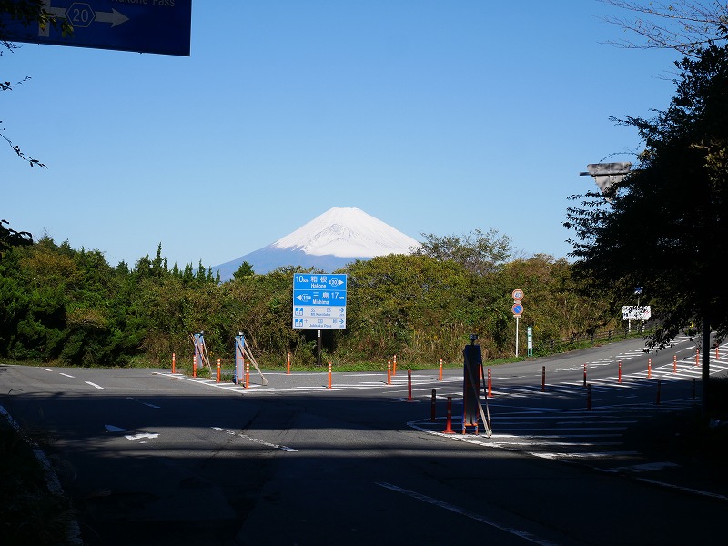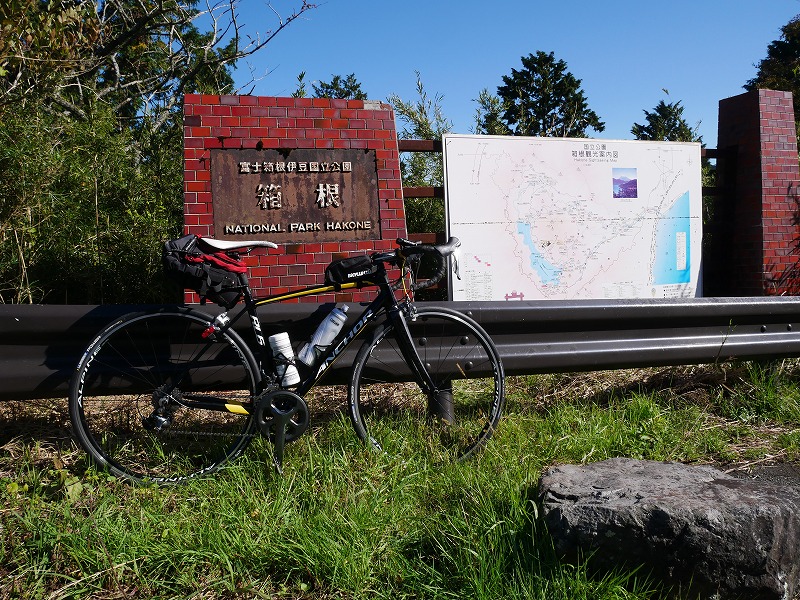 ホテル前の駐車場で自転車を組み立てて早速出発、箱根峠を目指します。