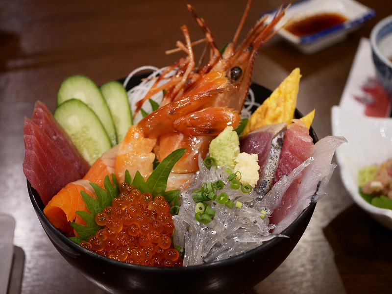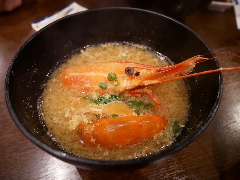 最初に海鮮丼に乗っている海老の頭は、好きなタイミングで味噌汁にしてくれるようです。