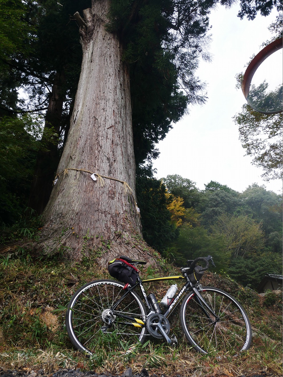 しばらく走っていると、良い感じのお社と大木を発見。思わず脚を止めてしまいます。