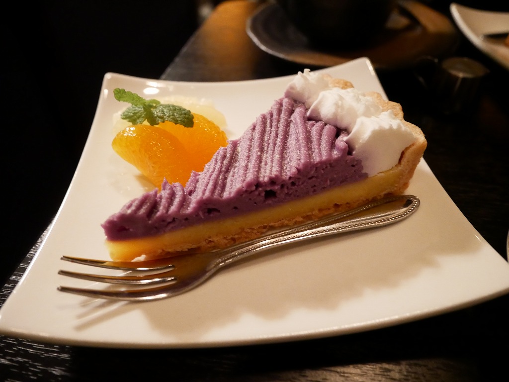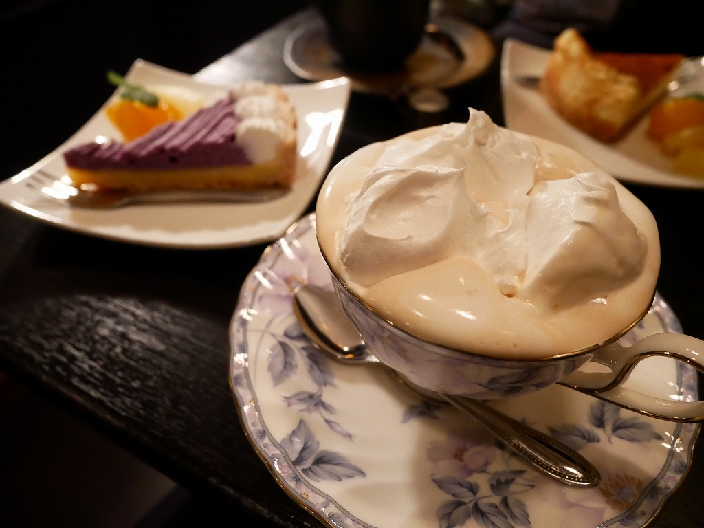 <ウィンナーコーヒー、紫いものタルト、お替りのブレンド>
