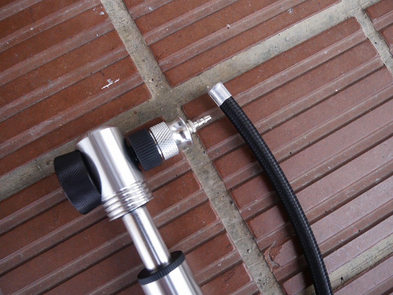 3気圧程度詰めてチンタラ走っていき、高圧ポンプを借りて