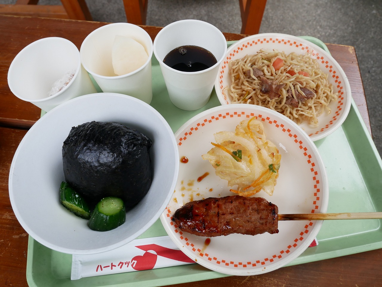 塩焼きそば、白餡?のおやき、和梨、ドリンク。どれもすごく美味しかった!