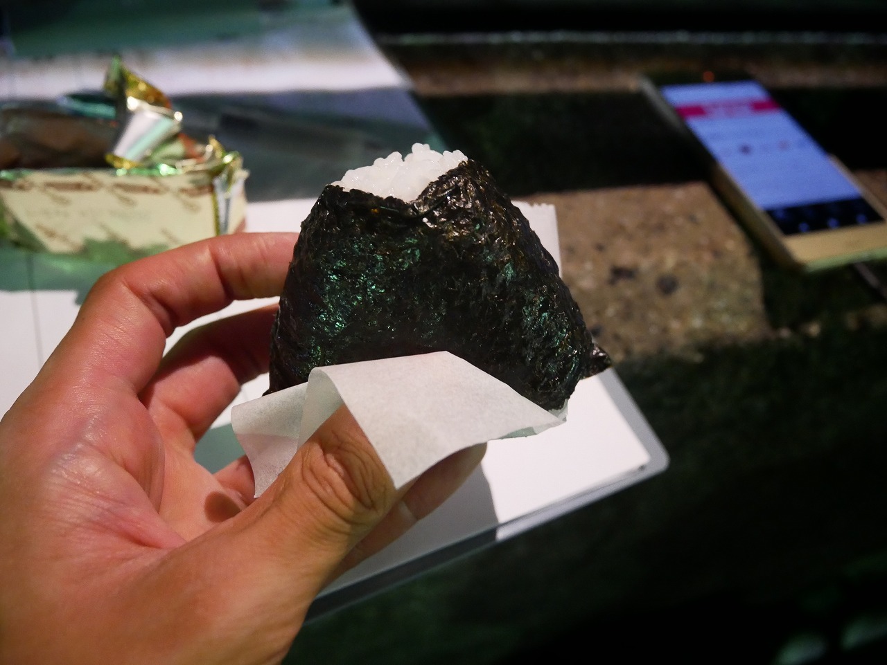 差し入れのおむすびが、胃の腑に染みわたる・・・!