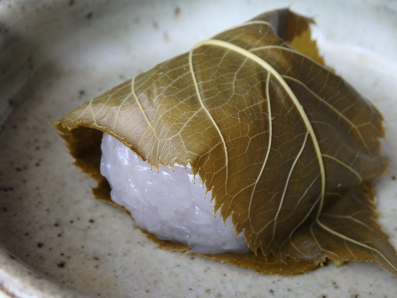 歩月さんの柏餅、お餅をくるむのが柏ではなくサルトリイバラの葉っぱとなっていますが、これは柏の葉が入手し辛い西日本の暖地に時々見られるタイプで、お店の方が岡山の山野で採取したものだとか(桜餅と違って葉っぱは食べられませんが…笑)。