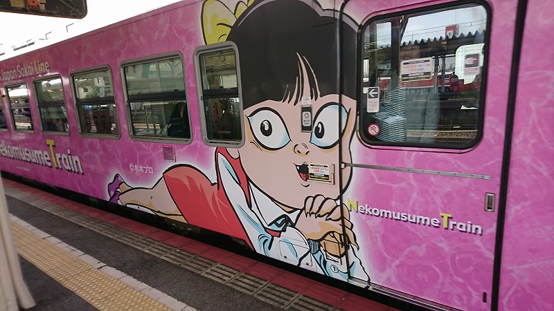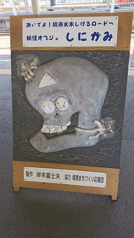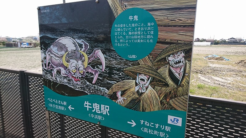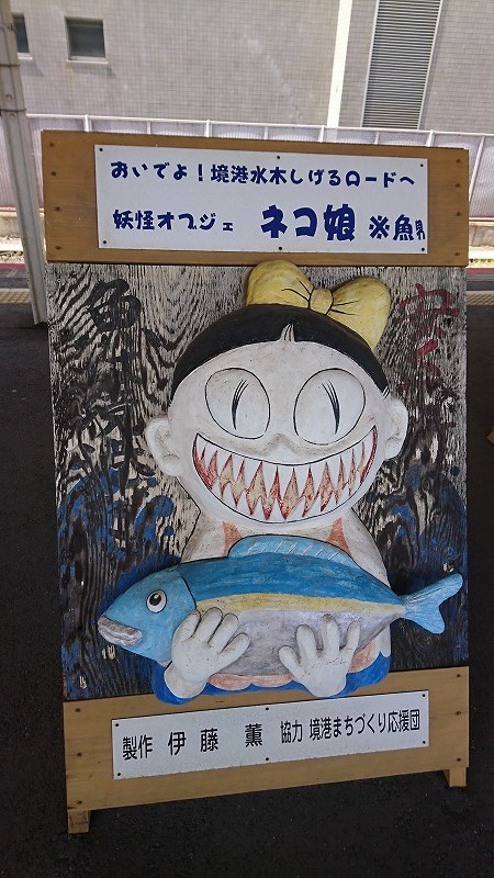 猫娘電車に揺られつつ、目的地の中浜駅に到着。境線はそれぞれの駅に妖怪名が付いてまして